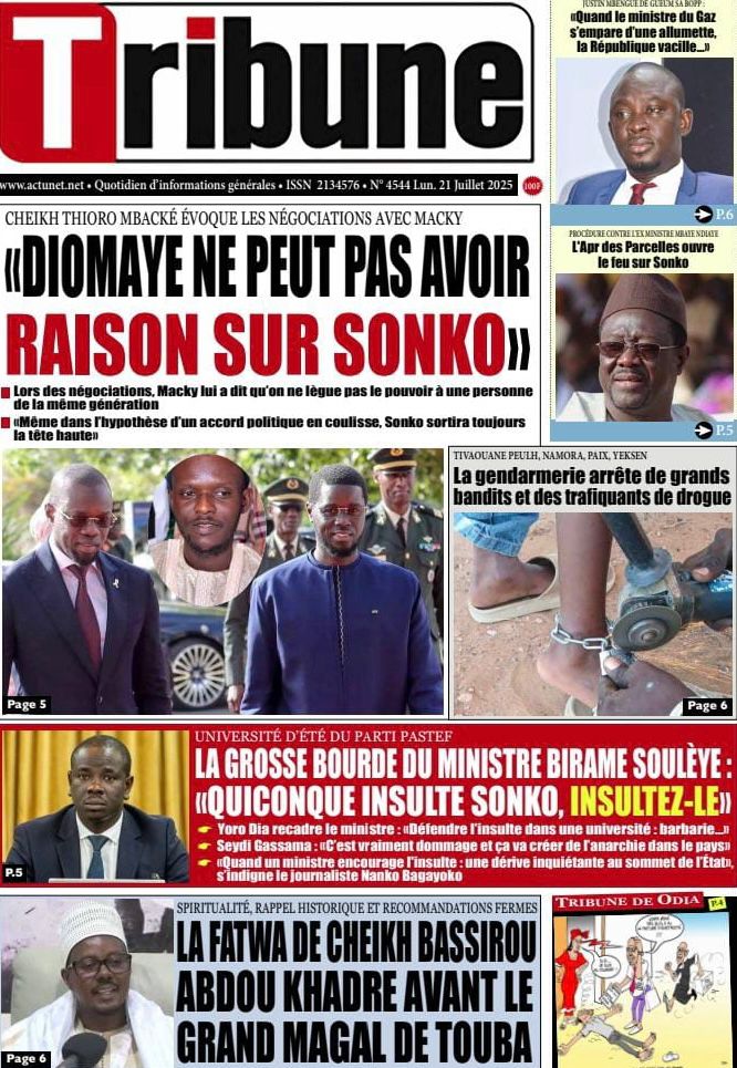 ActualitéPeoplePolitique Découvrez les Unes des journaux sénégalais du lundi 21 juillet 2025 juillet 21, 2025 redaction redaction