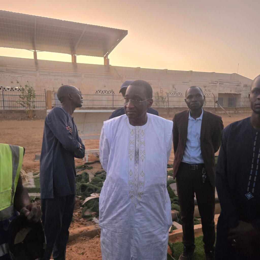 Le Maire de Podor Mamadou Racine SY a visité le chantier de la pose du gazon synthétique du mythique stade Alassane Wade de la ville.
