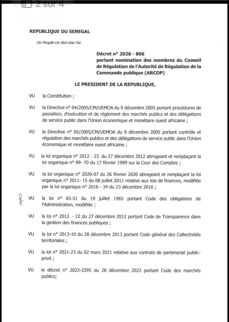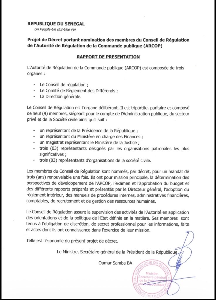 Décret : Voici les neuf membres de l’Arcop ( Documents)