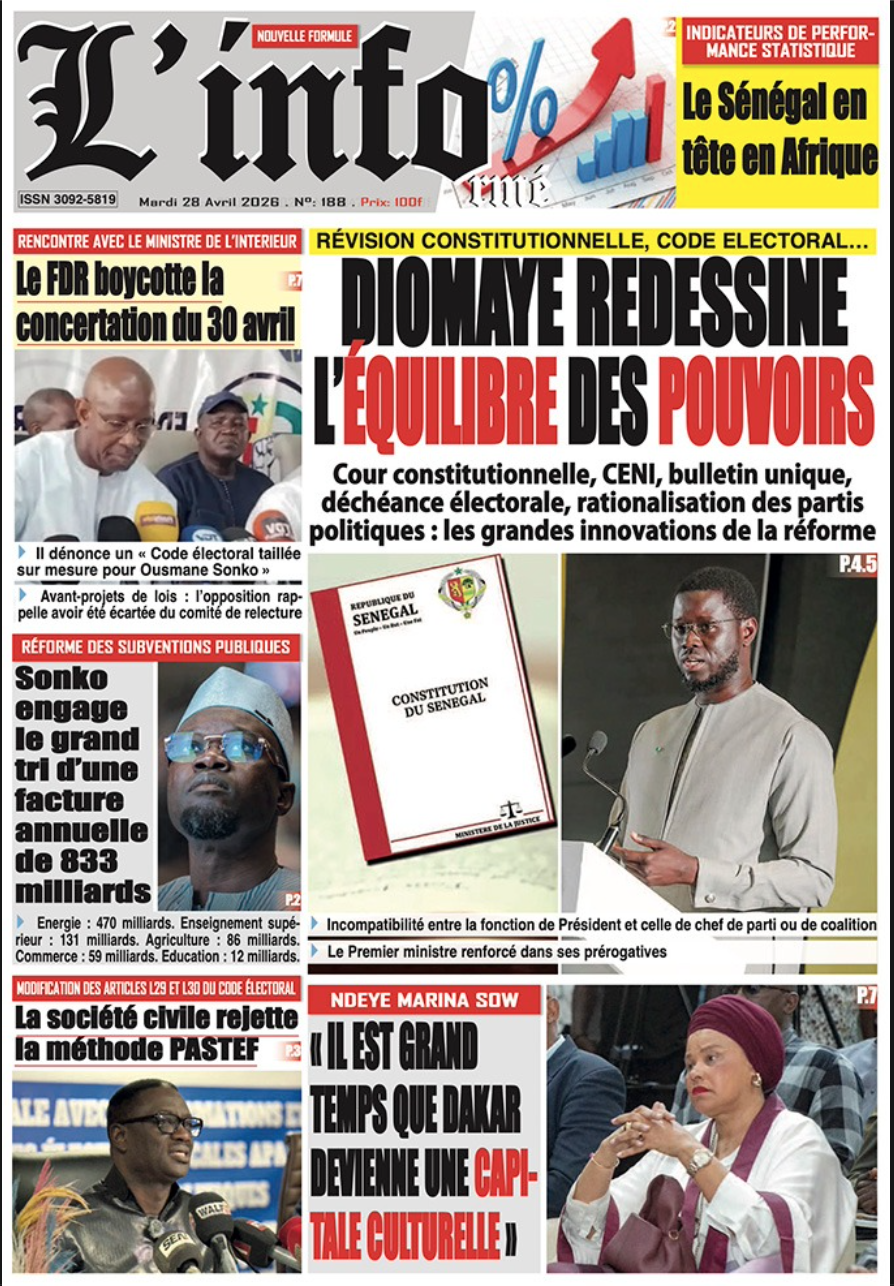8 nouveaux décès, portant le bilan à 378 morts, 30 cas graves et 98 tests positifs dont 58 communautaires, enchaîne Source A. Ce quotidien révèle que la commune de Dahra Djolof assise sur une poudrière, comptabilise au total 31 cas communautaires, dont 11 communautaires en 24 heures. Le bilan devrait s’alourdir car les malades asymptomatiques errent dans les rues et sans aucune quarantaine de leurs familles. Le district sanitaire ne dispose d’aucune salle d’isolement. Le Maire Mao Ndiaye, dont trois agents municipaux sont infectés, administre sa ville à partir de la gare des Baux Maraîchers.